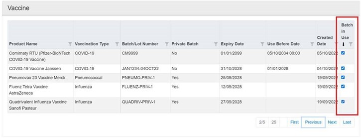 In order to rectify these issues going forward any incorrect ‘manually-entered’ batches need to be deactivated in each Pharmacy (for all affected vaccination types) by unticking the ‘Batch In Use’ Flag against each batch.