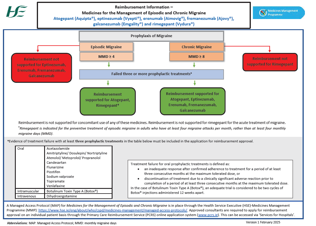 Source: HSE, available at hse.ie/eng/about/who/cspd > Medicines Management Programme > Managed Access Protocols > Migraine.