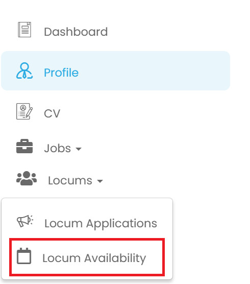Profile → Job Type → Locum Job